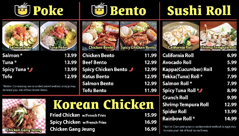 Some customer favorites include the Beef Bulgogi Bowl, Salmon Poke, and Chicken Katsu Bento. The hot stone bibimbap, a signature dish, stands out for its crispy rice and flavorful toppings. Prices may be on the higher side, but the portion sizes ensure you get your money’s worth.